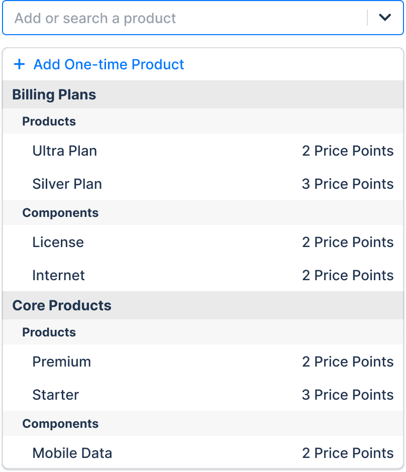 Surfaced all products and components from the user's existing subscription. Quickly ran into an edge case—customers with 50+ products in a family made this overwhelming fast.