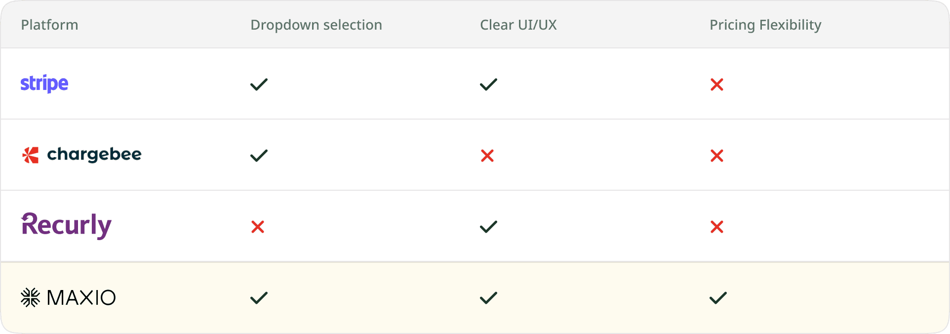 Closed the feature gap against Stripe, Chargebee, and Recurly—making Maxio more competitive in the market.